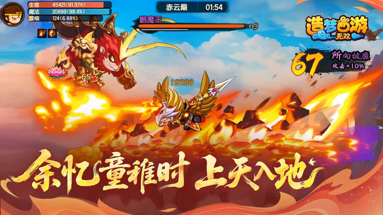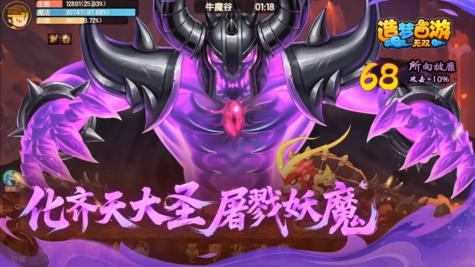 《造梦西游:无双》是一款西游题材的横版冒险动作闯关RPG游戏。故事以《造梦西游七魔王篇》为原型,讲述了师徒四人取经归来后,牛魔王从炼丹炉中解封,召集旧部为祸东胜神洲,悟空逐一击溃七大魔王,守护东胜神洲的故事。