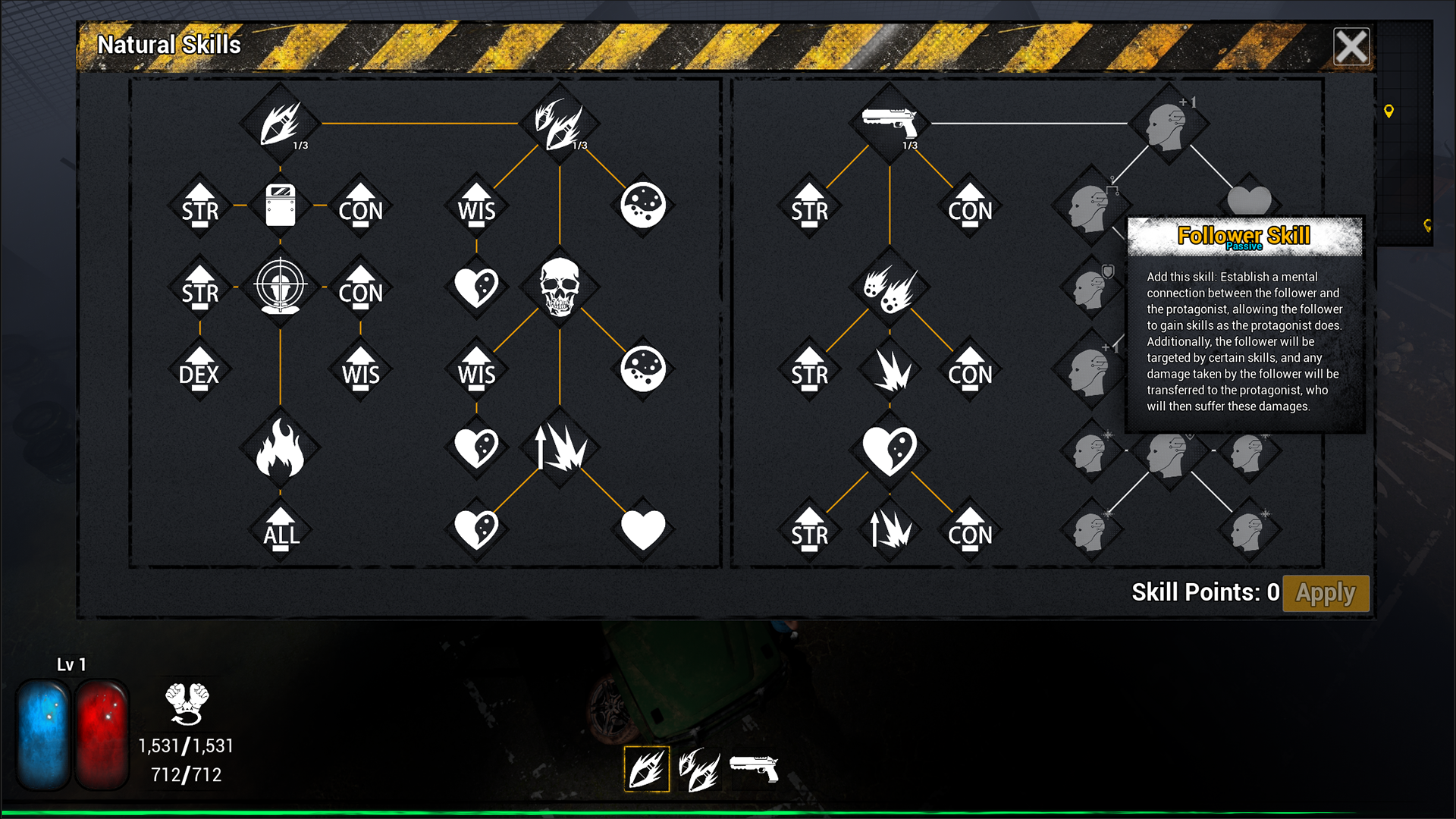 4、玩家可以创建多个角色,角色的名称也可以修改。创建多个角色的通过天赋,能够让这些存档角色随机的方式跟随主要操纵角色进行战斗,消灭丧尸。