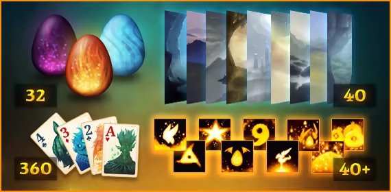 仙境世界有 40 个地点、360 种独特的纸牌布局等待你来探索,还有 32 种宠物可以收集、孵化、进化!